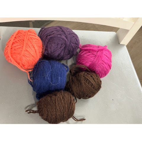 • beigen ja vaalean ruskean sävyisiä paksuja lankoja useampana keränä