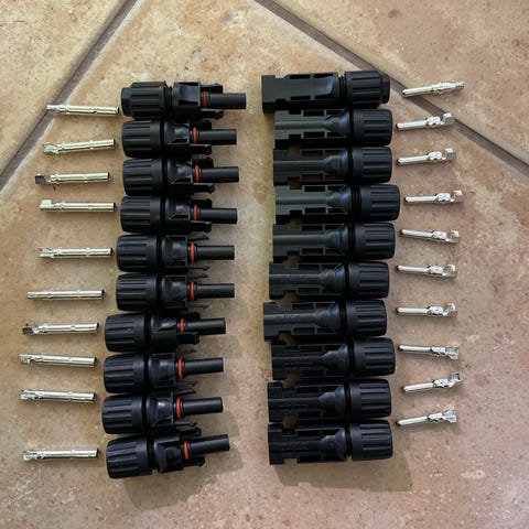 Jäi joitakin omasta projektista yli. Aurinkopaneelien liitin. Hinta on narttu+uros pari. Toimitus esim kirjeessä, pikku pakettina.