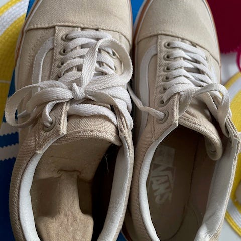 Jenkeistä ostetut vans kengät. Hieman käytön jälkiä ja kantapäissä puhki kulumat