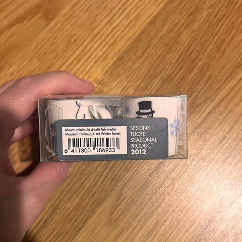 Myydään täysin uudet Arabian minikokoiset muumimukit Hiihtäen kera herra Virkkunen (2014) kuosissa. Koko paketin (sis.4kpl) hinta on 25€.