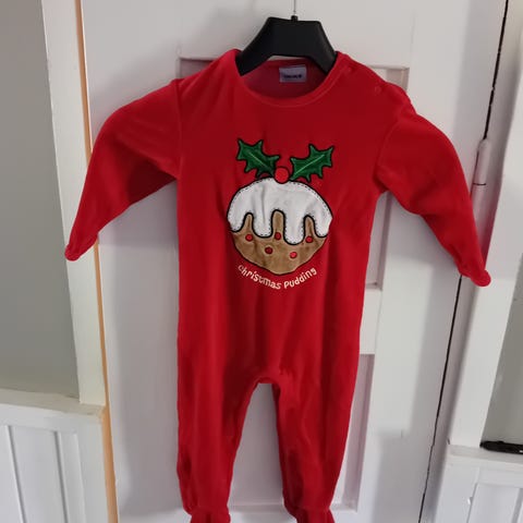 Puuvillainen tonttupuku, paita ja housut, koko 86-92.