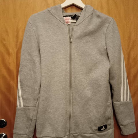Adidas Naisten XL huppari, harmaa väri, raidallinen kuvio olkapäällä, koko xl. Sopii naisten käyttöön.