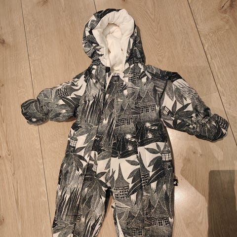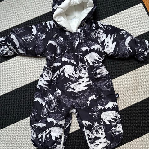 Reiman muumikuvioitu talvihaalari/makuupussi. Haalarin saa vetoketjun avulla muutettua makuupussiksi ja hihansuut saa käännettyä tumpuiksi.