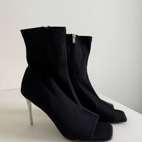 Even&Odd korkokengät, koko 41. Kengissä on mustat hihnat ja hopeanväriset korot. Materiaalina on keinonahka. Koron korkeus 10cm, sisäpohjan pituus 26cm. Korossa muutama kolhu, näkyy kuvassa.