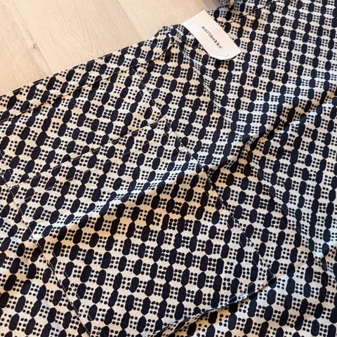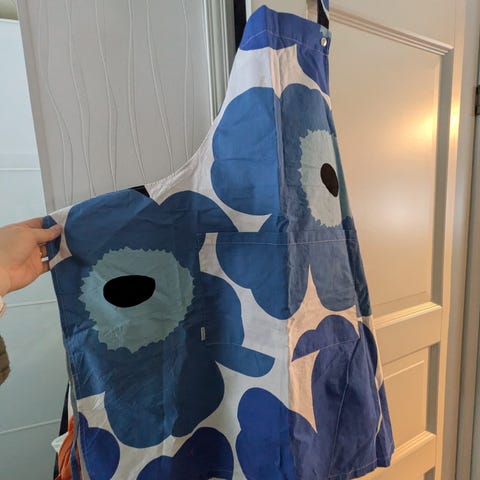 Käytetty, pesty. Taskussa ja etulapussa muutama kahvin värinen tahra, ei lähtenyt normi pesussa. Sappisaippualla ehkä saa pois. Mmm