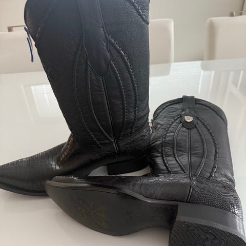 Sandro nahkaiset saappaat, musta väri, koko 44. Saappaissa on joustavat sivukappaleet ja nahkapohjat. Tyyliltään klassiset ja monikäyttöiset saappaat. Vain sovitettu, erittäin laadukkaat.