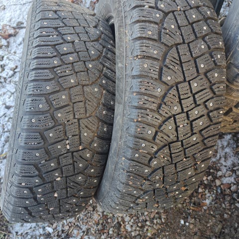 Hyvät nastarenkaat halvalla. Renkaissa pintaa 6-6,5 mm ja kaikki nastat tallella.
