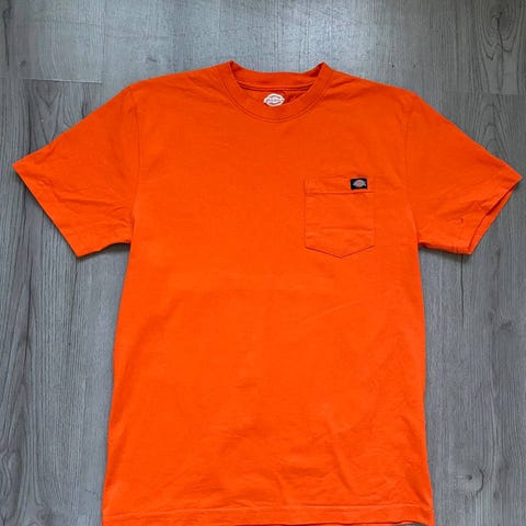 Dickies Orange T-paita miehille, koko L. Valmistettu 100 % puuvillasta. Oranssin värinen, jossa etuosassa sinivalkoinen camo-kuvioitu logo.