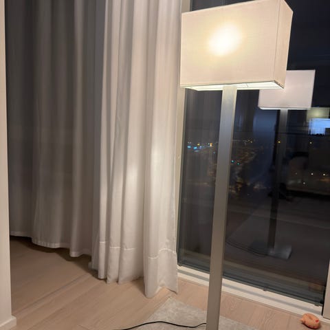 Rottinkinen Ikean pöytä-/lattiavalaisin. Poistunut Ikean mallistosta. Korkeus 40 cm, leveys 18 cm.