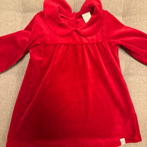 Vain muutamasti pidetty Lindexin punainen vakosamettimekko koossa 74.