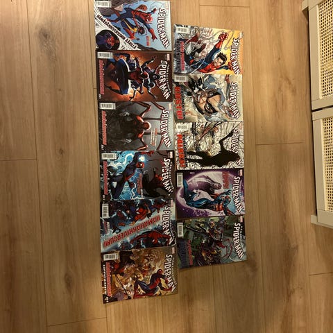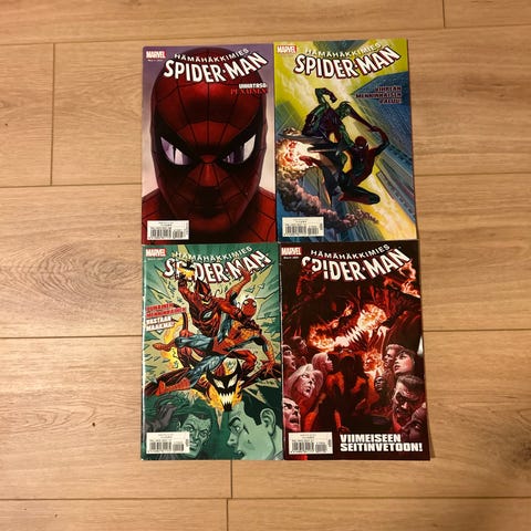 Marvel Spider-Man Ihmesarja sarjakuvakirjat, 1 ja 4-osat, joissa jokaisessa yli 300 sivua. Kirjat sisältävät Spider-Man seikkailuja ja hahmoja kuten Hämähäkkimies, Tuhkimo, Lisko, Kuurankin ja muita. Sarjat ovat suomenkielisiä ja suunnattu sarjakuvien ystäville. Ehjät, ei repeytymiä. Kulmissa pientä ajan tuomaa kulumaa.