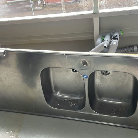 Rosterinen tiskipöydän kansi hanoineen jos myös asitinpesukoneen liitäntä.