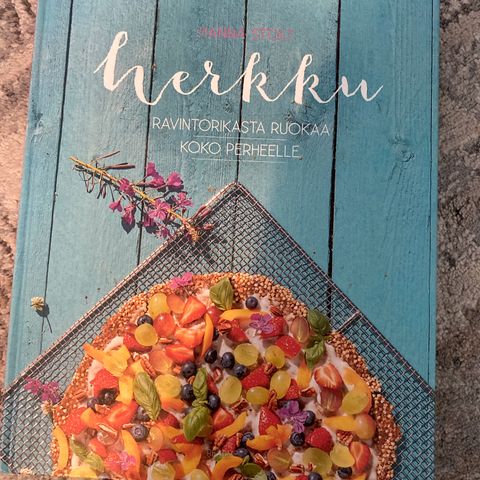Healthy Kitchen kirja, jossa on reseptejä ja ohjeita terveelliseen ruoanlaittoon. Kirja sisältää kuvia ja vinkkejä monipuoliseen ja ravitsevaan ruokavalioon.
