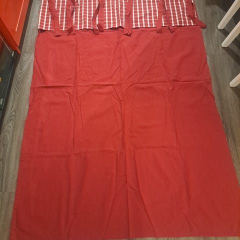 Joulunpunainen tonttu-kappaverho. Todella napakkaa ja paksua kangasta. Vaatii verhonipsut. Jos ei verhoksi,niin ompele vaikka tyynynpäälliset!