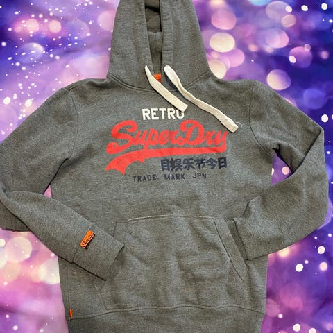 Superdry Vintage Huppari tummanharmaana, kokona S. Miehille suunniteltu huppari, etutasku ja säädettävä huppu. Valmistettu pehmeästä materiaalista. Täysin käyttämätön.