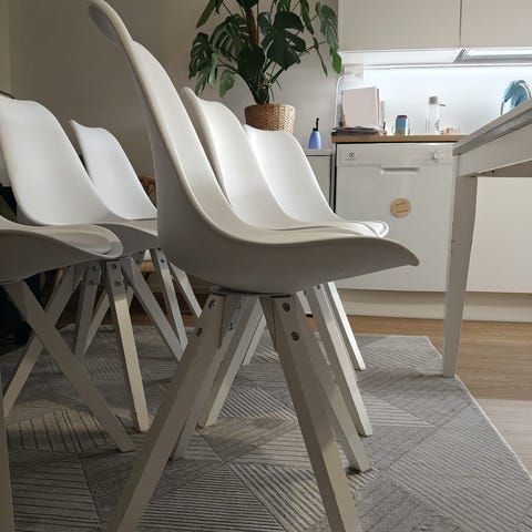 Myydään neljä kappaletta Askosta 2022 ostettua ruokapöydän tuolia, ovh. 100€. Tuoleissa harmaa tekstiilipäällinen ja metallirunko.