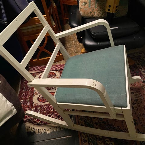 Siistikuntoinen pieni keinutuoli. Sopivasti ajan patinaa..