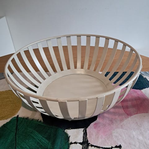 Iso Pentikin metallikori. Valkoinen. Uusi, käyttämätön. Halkaisija 37,5 cm ja korkeus 14,5 cm.