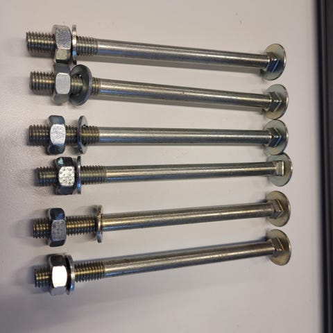 Pussissa 10kpl pultteja joiden pituus 10mm sekä 10kpl laippamuttereita .