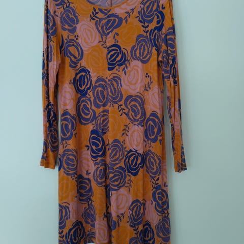 Gudrun Sjödén trikoomekko koko L, väriltään vihreö- luonnonvalkoiset. Materiaalina 94% mikromodaali ja 6% elastaani. Mukava päällä, toimii kesällä ja talvella.Kai-Kai 55cm. Venyy helposti 75cm asti. Edessä vatsan kohdassa avautuva vekki.