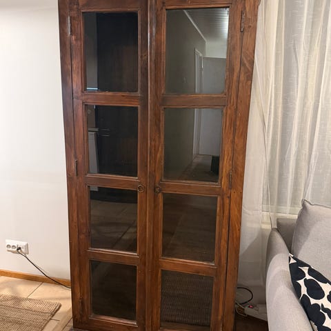 Ruskea italialainen vitriini. Sisällä valot.