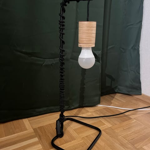 Arabian voimajohdon proppu. Valaisimeen voi helposti vaihtaa myös varjostimen. Harmahtavan sininen.