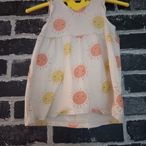 Ihana pitkähihainen mekko pallo kuviolla, pinnassa haitua, ehjä ja tahraton. Koko 6-9 kuukautta, mielestäni siis vasta aparhaiten kokoa 68.