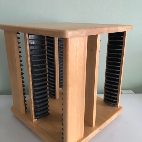 VHS Kasettitorni lasiovella.Uudenveroinen.Puinen mustalla muovilla pinnoitettu runko.