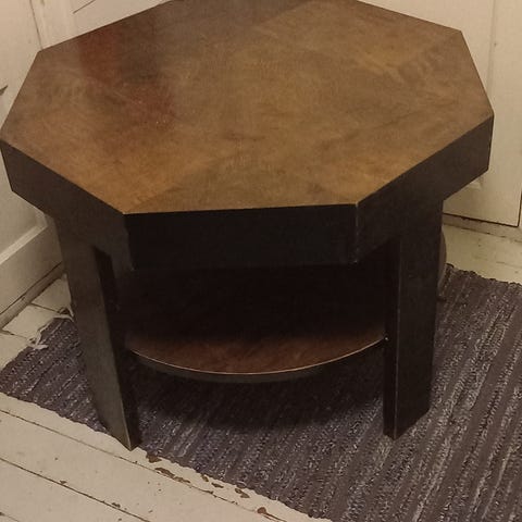 Patinaa, mutta ikäisekseen hyvässä kunnossa, yhdessä tuolissa verhoilussa vähän kulumaa (katso kuvat).