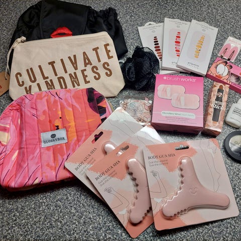 Osa jonkun verran käytetty, Enliven hoitoaine, Cien muotovaahto ja Garnier misellivesi käyttämättömiä. Tigin Beadhead ja Xtran hiuskiinne lähes täysiä. Muissa vähintään puolet jäljellä. Goldwellin soft color -vaahto sävyssä light brown. Lisäksi kosmetiikkalaukku, kynsiviiloja ja uusi suihkuverho kiinnitysrenkaineen. Lisätty käyttämätön Doven suihkusaippua ja pari kertaa suihkautettu Kinokon kasvovesi. Vain nouto keskustasta ja käteismaksu. MMM