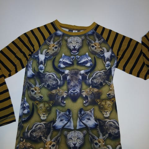 Valkoinen, A-linjainen puuvillapaita, jossa on pystykaulus ja napit edessä. Helma takaa pidempi. Malli on ehkä tyttöjen, mutta sopii mielestäni myös pojalle, koska muistuttaa vanhanaikaista miesten paitaa. Laadukas paita, ei tahroja, käytetty pari-kolme kertaa. Ei ole silitetty nyt kuvia varten.
