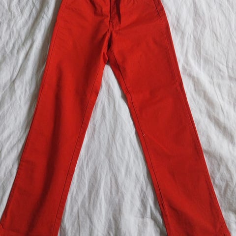 Kahdet vintage samettifarkut, suklaanruskea ja beige (hiukan vihreään kääntää). Valmistaja Farmariteollisuus Oy Lahti, merkki King. Naisten koko 40 C, mutta ei näissä mikään estä miehiä käyttämästä. Vyötärön leveysmitta noin 38 cm, ja vyötärö-lahje edestä mitattuna noin 104 cm, hiukan lyhennetty lahjetta.