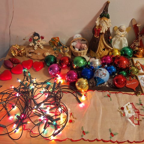 Jouluvalot joulukuuseen ( kaikki toimivat) lahjakasseja, koon 36 joulutossut.