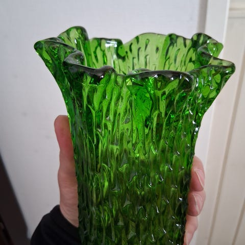 Vanha vintage maljakko käsin maalatut koristeet korkeus 24cm 1960luku? Tekijästä ei tietoa.