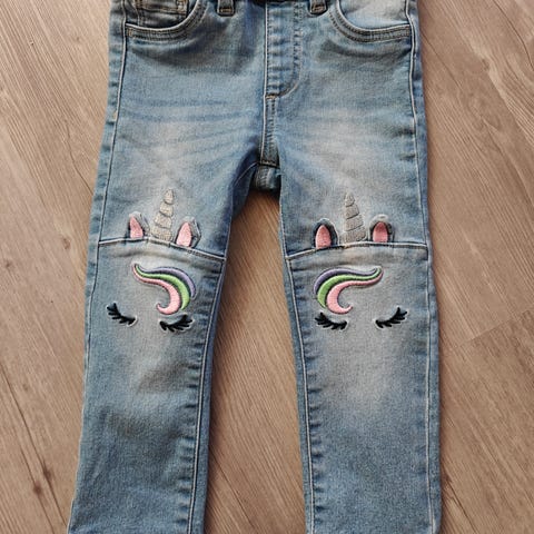 Kappahl lasten joustavat farkut söpöill kirjailuilla, vyötäröllä säätömahdollisuus, koko 92cm