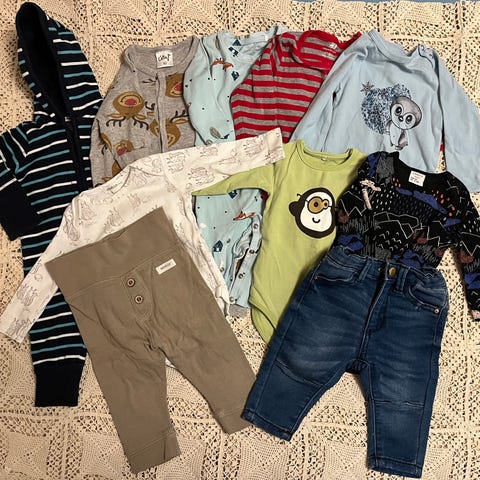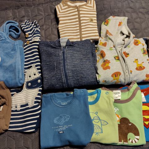 Poikavauvan vaatepaketti. 2xpyjama, 3xbody, 3xkietaisubody, 2xhousut. Siisti käytetty kunto. Merkkeinä mm. Fixoni, H&M, Ciraf, Lindex, Tutta. Koot 60-68. Mielestäni vastaavat noin kokoa 62.