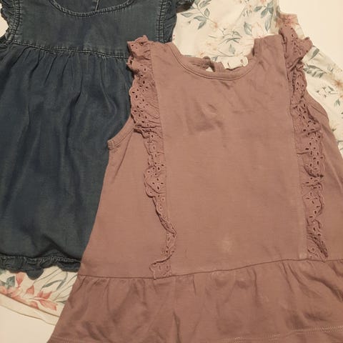 Newbien kaunis setti, mekko kokoa 86 ja leggingsit 92