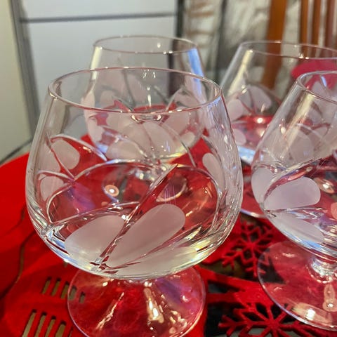 Kuusi kirkasta konjakkilasia