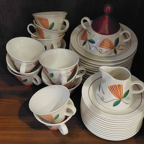 Kuvan astiat. Arabia Harlegin sarjaa. Teekuppeja on 10 kpl tasseja siihen 9. Kahvikupit 20 kpl tasseja 19 kpl. Eli kummastakin puuttuu yksi aluslautanen. Pullalautasia on 10 kpl jotka eivät ole Arabiaa mutta ovat juuri saman väriset niin olen niitä teekuppien kanssa käyttänyt. Tuotteet ovat käytettyjä mutta hyvässä kunnossa ei kolhuja eikä muutakaan kuppiin kuulumatonta. Tuotteet ovat noudettavissa Savonlinnan Kerimäeltä Postitus onnistuu jolloin ostajalle toimituskulut (hyvin pakattuna) Toridiili ei ole satavilla tähän tuotteeseen koska lähimpään toimipaikkaan 30 km (eikä ole autoa). Tuo Matkahuollon ja Postin lokerikko on lähellä johon pystyn nämä viemään. Tästä kivat kupit vaikka jouluvieraiden kestitykseen joulupöydässä kun ovat vaaleita niin lautasliinoilla pystyy kivasti koristella. Maksan toimituskulut Matkahuollon tai Postin lokeroon !!