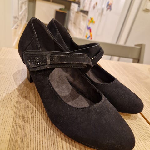 Toimistokäytössä pidetyt ara nahkaiset korolliset ballerinat. Jonkin verran kulumaa sisä ja ulkopohjassa, pinnasta siisti.
