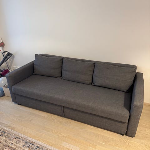 IKEA Carl Thore sohva harmaalla verhoilulla. Sohva on suunniteltu tarjoamaan istumapaikka ja tarvittaessa makuupaikka. Sopii erilaisiin tiloihin, kuten olohuoneisiin tai vierashuoneisiin.