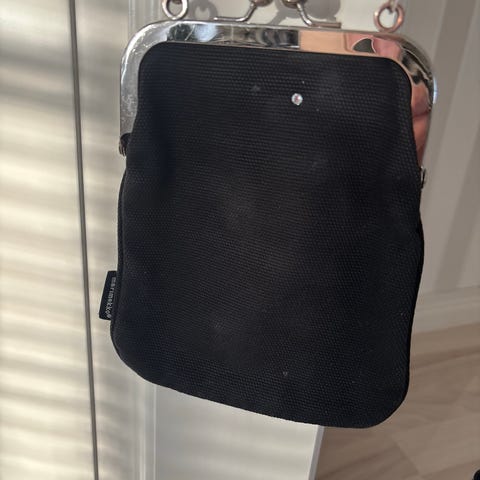 Hihnan pituutta voi säätää, laukku on hieman haalistunut sisäpuolelta.