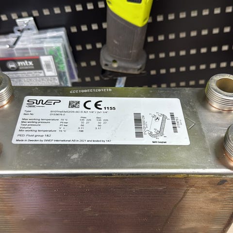 lämmönvaihdin, putket ja ritilät ei magneettisia, ehkä putket kuparia ja ritilät alumiinia. 720x462x133mm, korkeus mitattu päätykaariputkiin. putki 16mm halkaisijaltaan. Vain nouto käy.