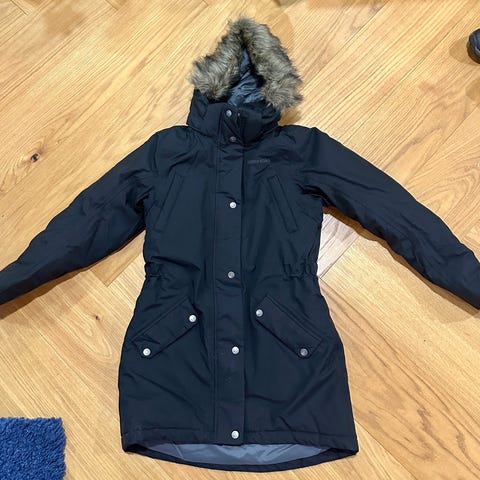 Musta Didrikson talviparka kokoa 160cm. Takki sopii niin tytölle kuin pojalle. Takissa on vettä ja likaa hylkivä kangas, irroitettava tekokarva hupussa sekä irroitettava huppu, hupussa tarra säätö mahdollisuus ja hihoissa on myös tarra säädöt. Tämä takki on lämmin ja siisti eli sopii erinomaisesti ulkoiluun. OVH 149€. Vain Postitus!