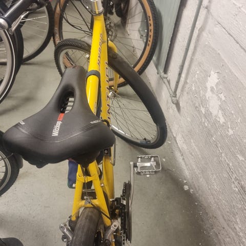 -jousitettu satulatolppa rikki/vaatii huollon. Mukaan saa halutessaan ehjän jousitetun tai jäykän tolpan.