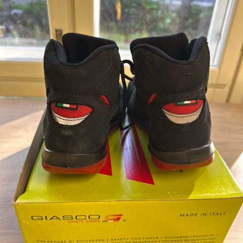 Valmistaja Italialainen Giasco, jonka kengillä uutena ostettuna kahden vuoden takuu. Eli laadukas jalkine kyseessä.
