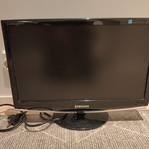 Samsung LCD-näyttö 20 tuumaa musta. Televisio toimii ja mukana tulee kaukosäädin. Sopii tietokonekäyttöön ja tarjoaa peruskäyttöön soveltuvan kuvanlaadun.