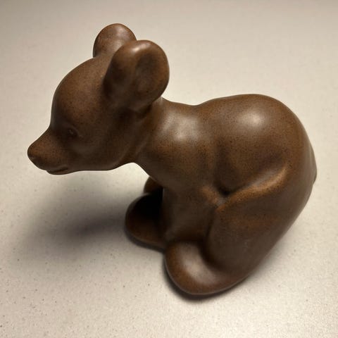 Figgjo Keramiikka Nallekarhu keramiikkapatsas, jossa on ruskea ja valkoinen väri. Patsas esittää istuvaa karhua ja on valmistettu keraamisesta materiaalista. Sopii koriste-esineeksi kotiin tai toimistoon.