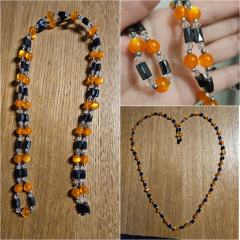 Voi pitää kaulassa tai ranteessa, kaikki pitkulaiset helmet magneettisia.