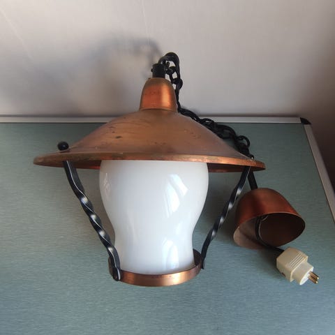 Vintage kattovalaisin – kuparirunko & lasivarjostimet